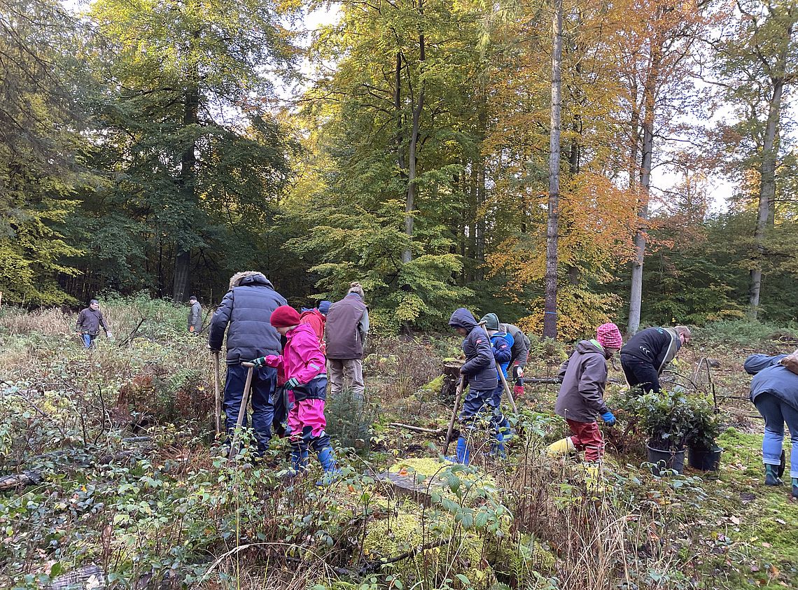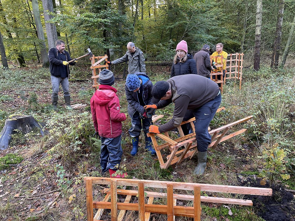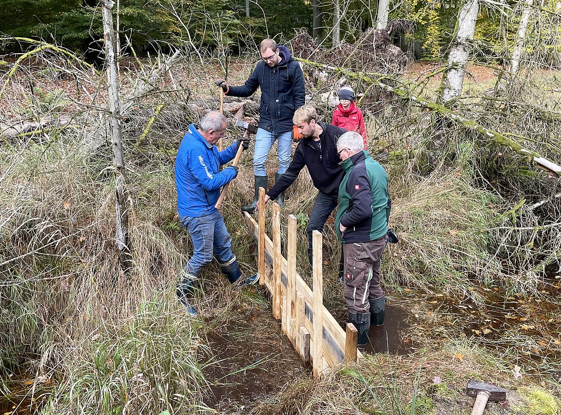 Zur Förderung des Naturschutzes und der Landschaftspflege hat der Lions Club Lübeck-Holstentor am 23.10.2021 mit 23 Mitgliedern, Damen und Kindern in einem entwässerten Waldmoor des Stadtwaldes Lübeck ein bisher einigartiges ökologisches Projekt durchgeführt: